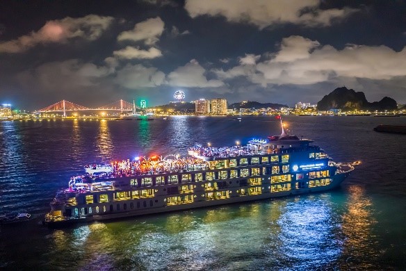 18h30: Ngắm nhìn vẻ đẹp lung linh của thành phố Hạ Long về đêm trong khi du thuyền di chuyển
